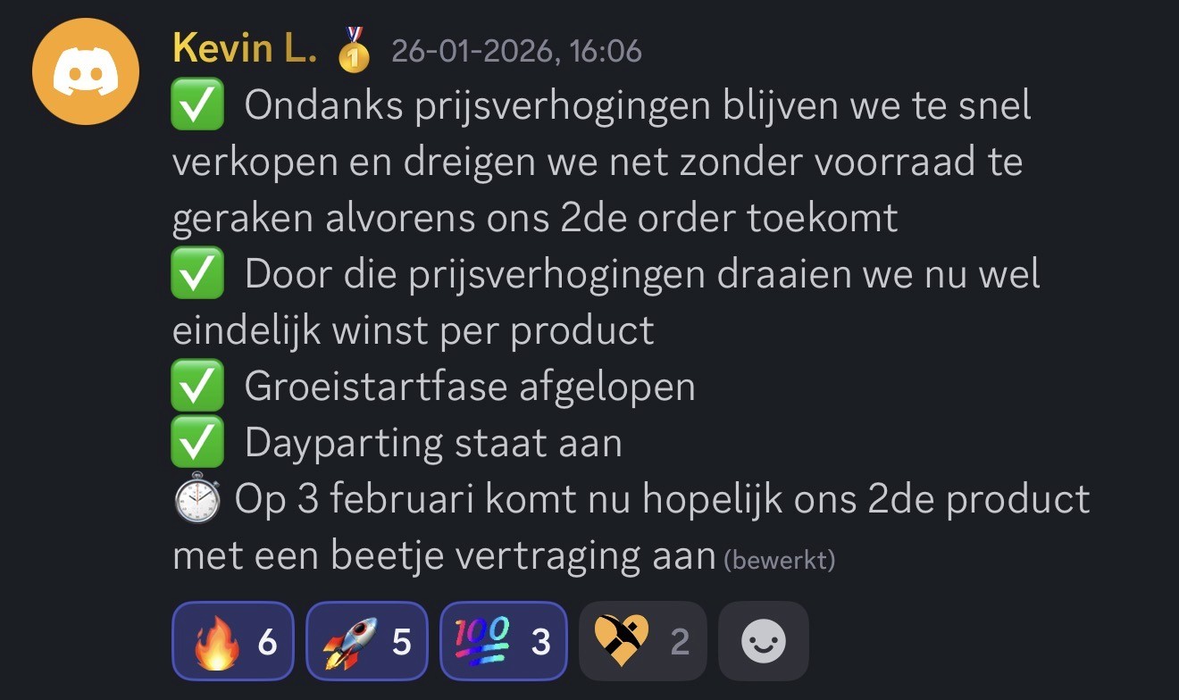 Heel goed geholpen door alle coaches en een winnend product gevonden. Nu een aantal maanden het product aan het verkopen en de verkopen springen door het dak met 1 product.